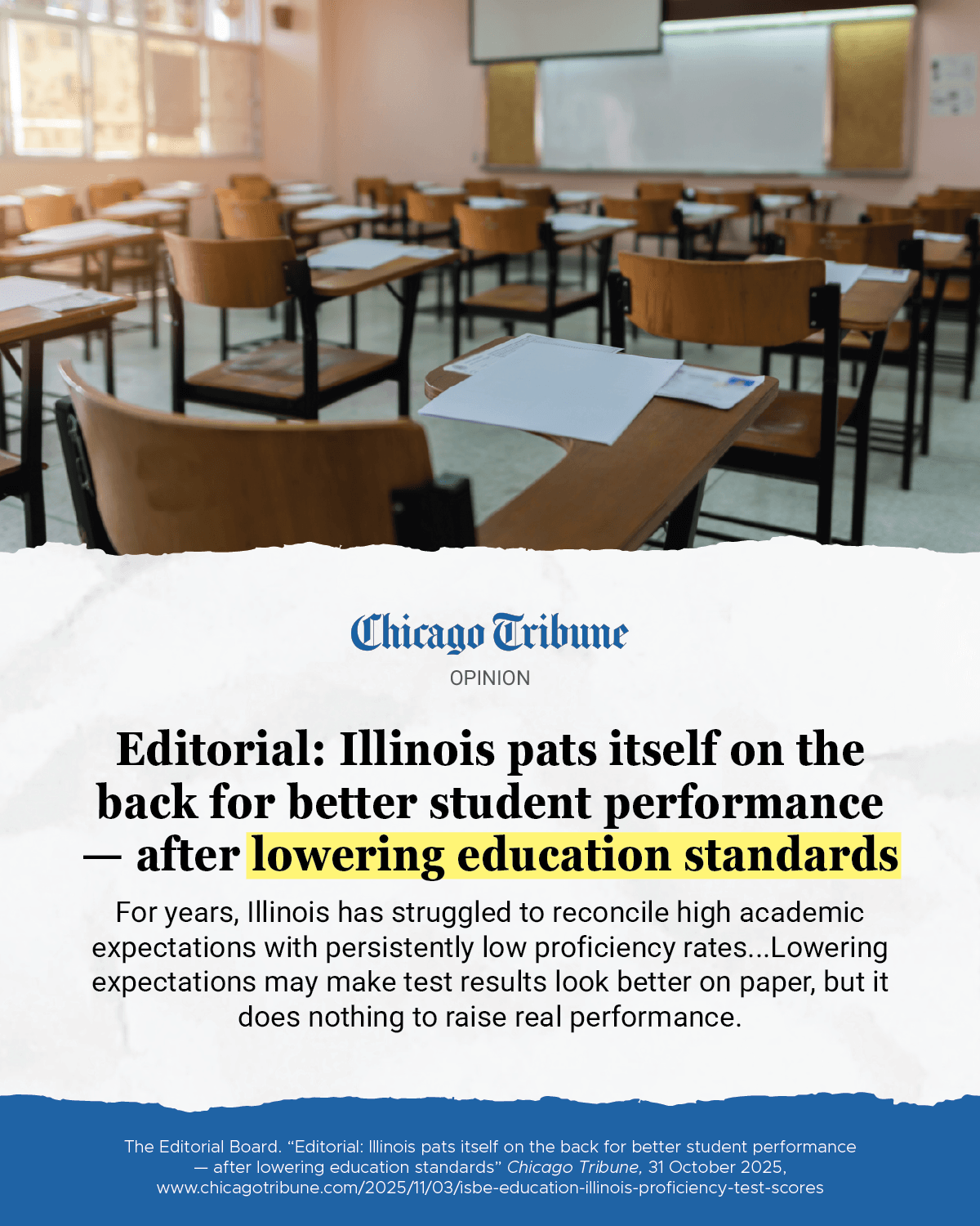 This week was another reminder of why Illinois families are frustrated. The State Board of Education is lowering academic standards while pretending test scores are improving. Chicago Democrats pushed through a $2 billion transit scheme that raids downstate road funding and hikes tolls by 60%.