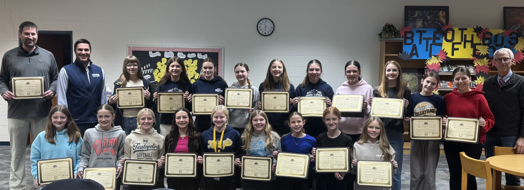 TEUTOPOLIS, IL – State Representative Brad Halbrook (R-Shelbyville) presented official certificates this week at Teutopolis Junior High and Teutopolis Grade School to recognize outstanding accomplishments by students, educators, and coaches.